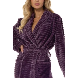 Dámský dlouhý župan bez kapuce ušitý ze super měkkého úpletu. Zavazování v pase, na úrovni boků kapsy.