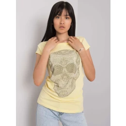 Jasně žluté dámské tričko s lebkou.