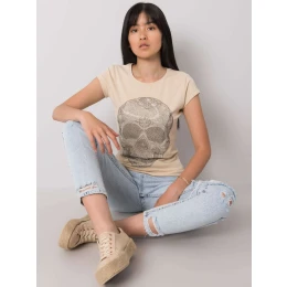 Béžové dámské tričko s lebkou.