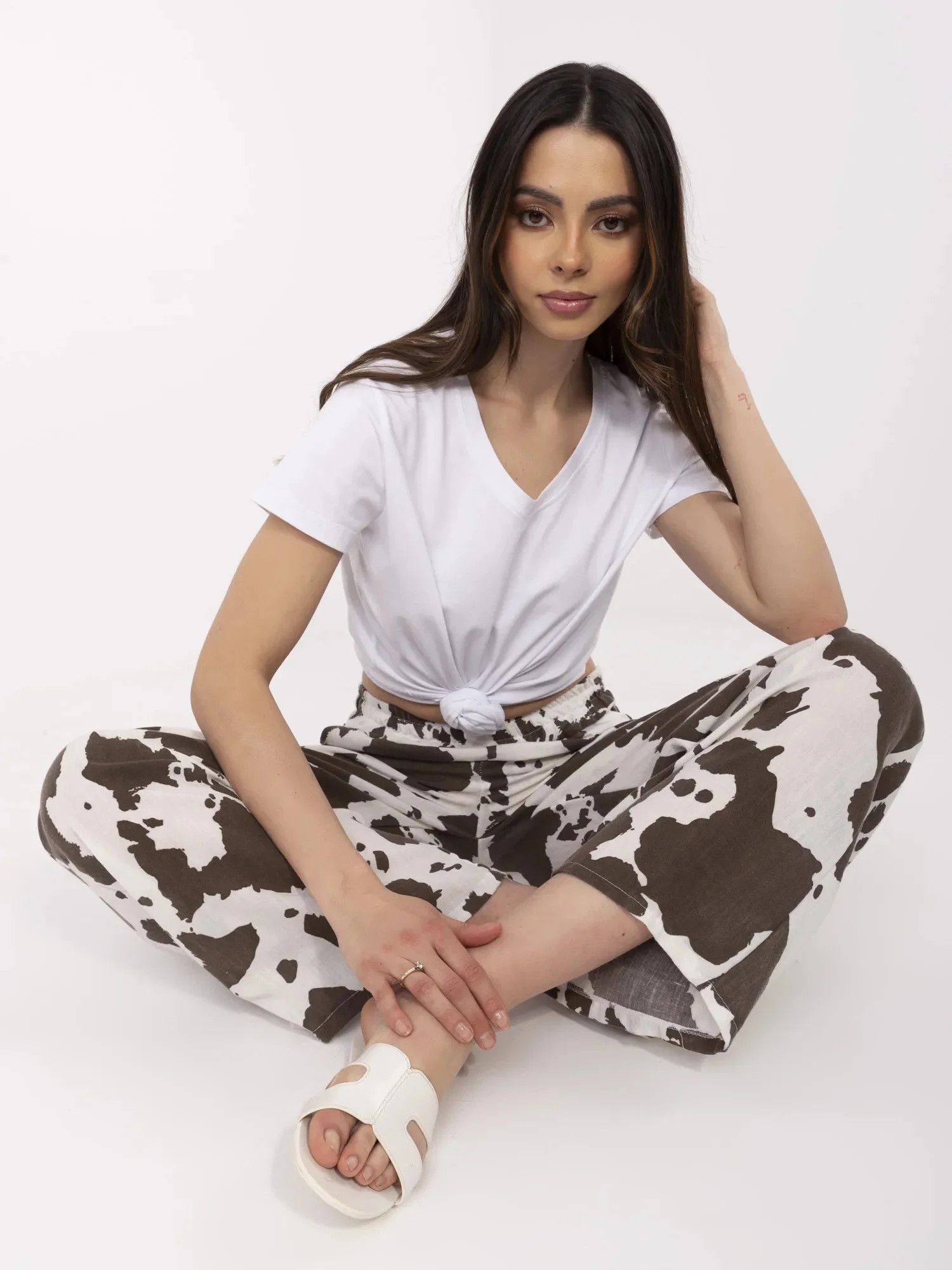 Wymiary t-shirtu w rozmiarze S mierzone na płasko: szerokość pod pachami - 51 cm, długość rękawa - 15 cm (od szwu), długość całkowita - 65 cm, szerokość w biodrach - 50 cm.