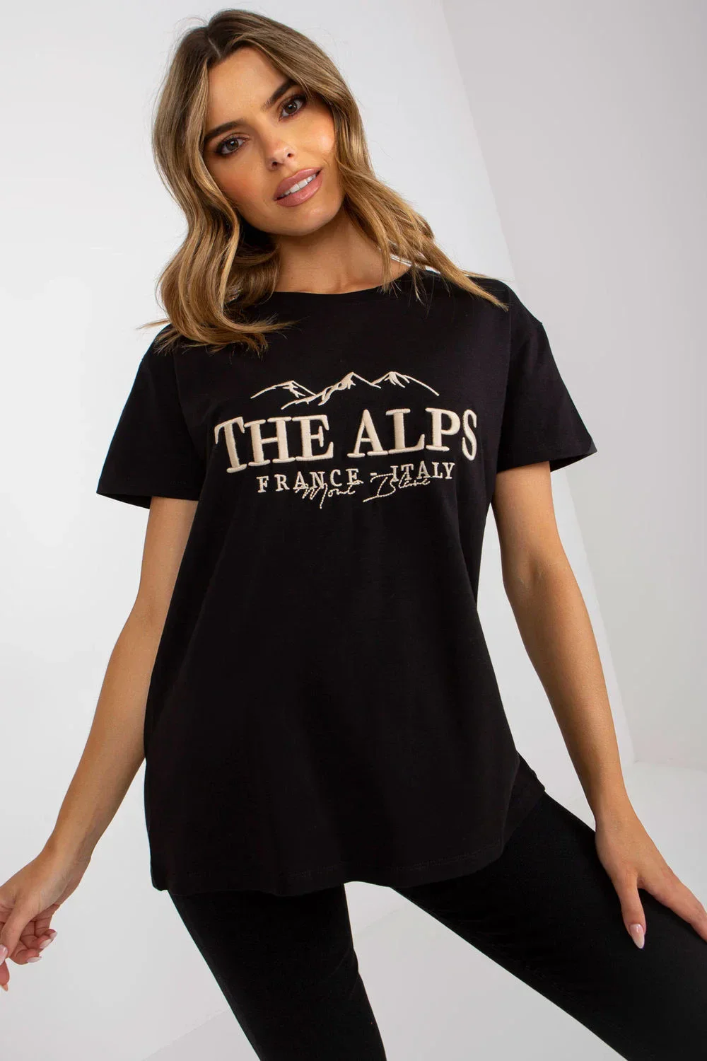 Tričko rovného střihu s krátkými rukávy. Zajímavá výšivka na přední straně.
