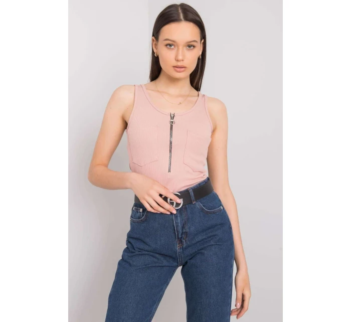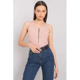 Tričko s kulatým výstřihem, ramínka. Zapínání na zip vpředu a ozdobné kapsy. Ideální na léto.