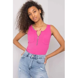 Tričko s kulatým výstřihem, ramínka. Zapínání na zip vpředu a ozdobné kapsy. Ideální na léto.