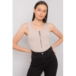 Tričko s kulatým výstřihem, ramínka. Zapínání na zip vpředu a ozdobné kapsy. Ideální na léto.