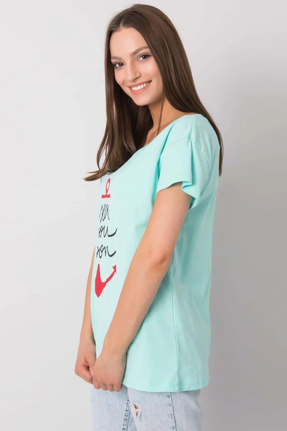 Dámské tričko s krátkými rukávy a kulatým výstřihem, ozdobný potisk na přední straně.