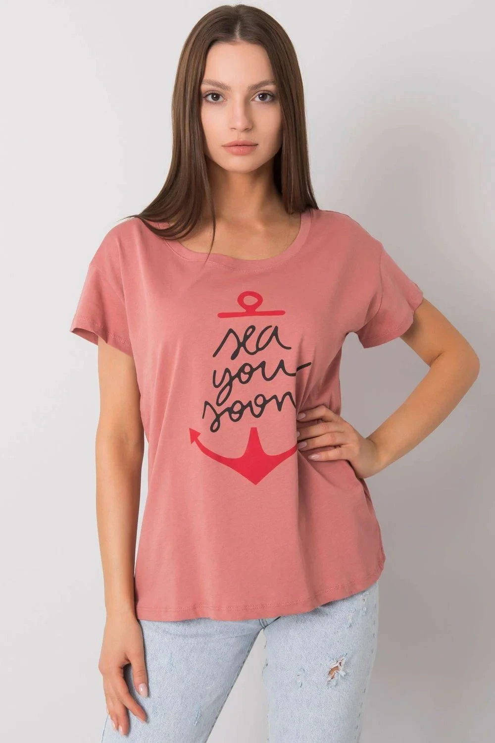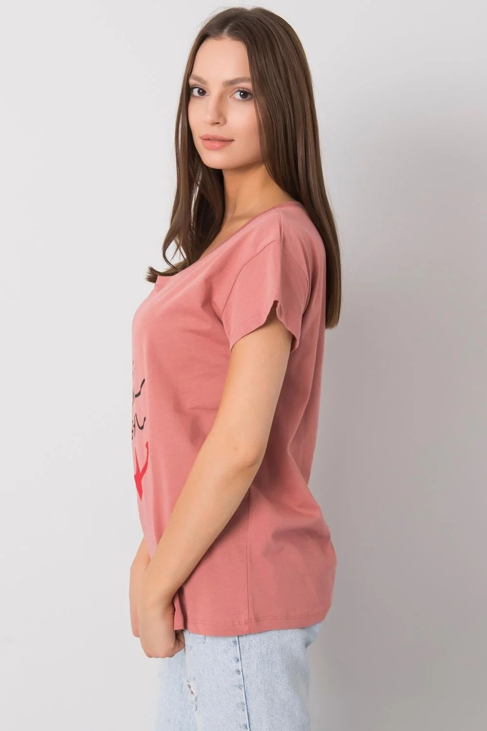 Dámské tričko s krátkými rukávy a kulatým výstřihem, ozdobný potisk na přední straně.