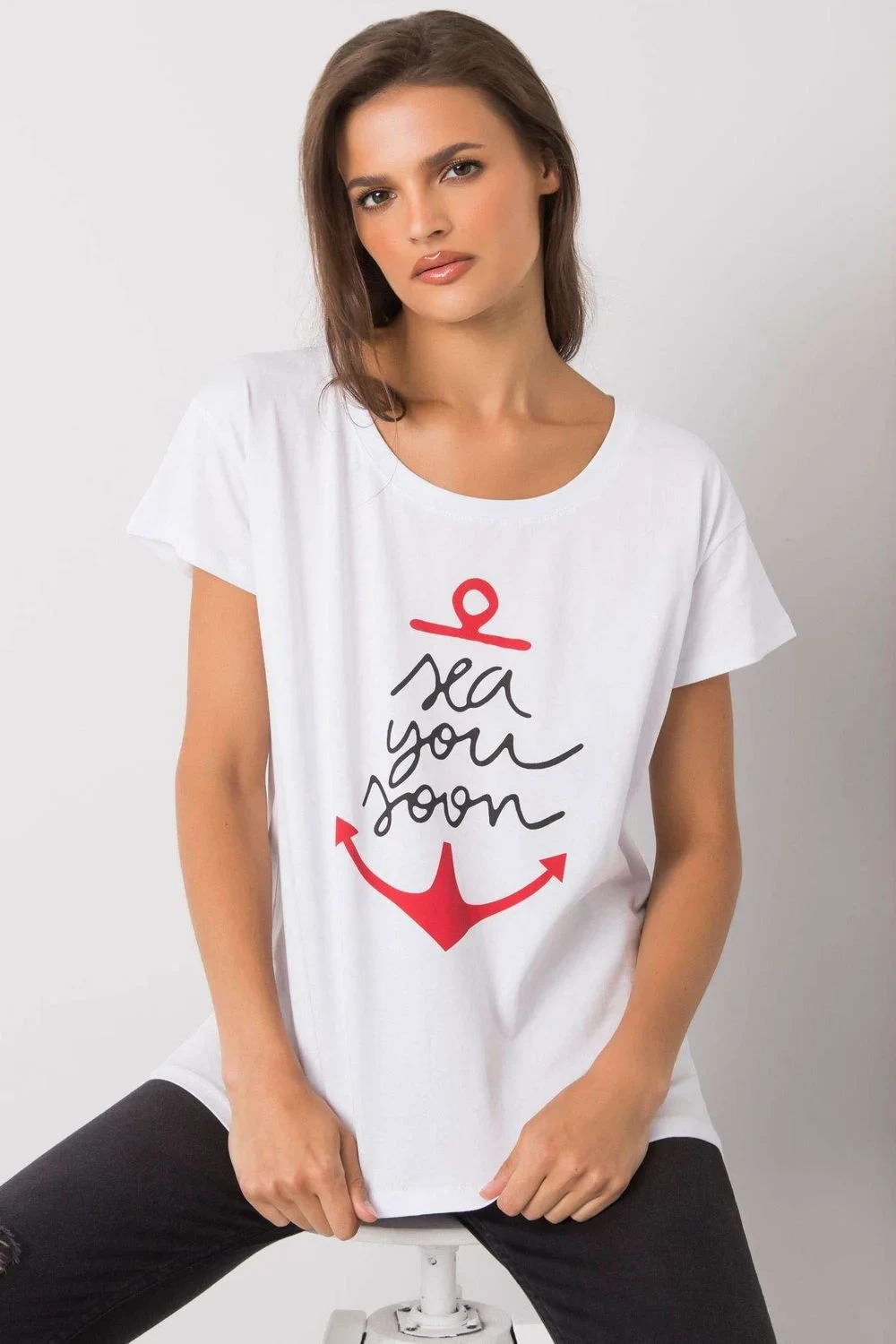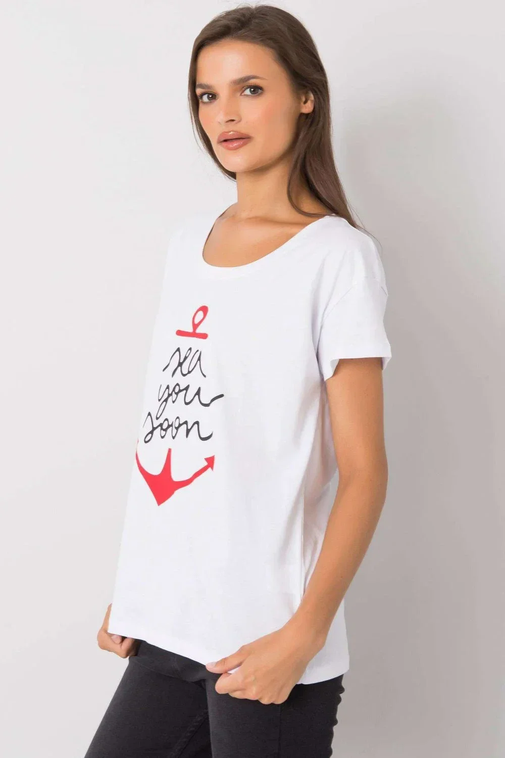 Dámské tričko s krátkými rukávy a kulatým výstřihem, ozdobný potisk na přední straně.