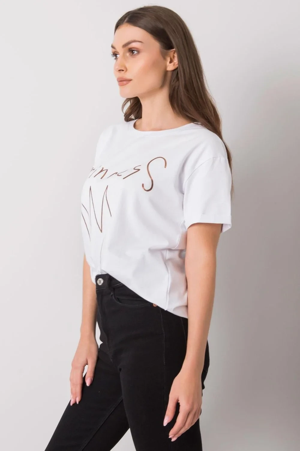 Dámské tričko s krátkým rukávem a kulatým výstřihem. Dekorativní potisk na přední straně.