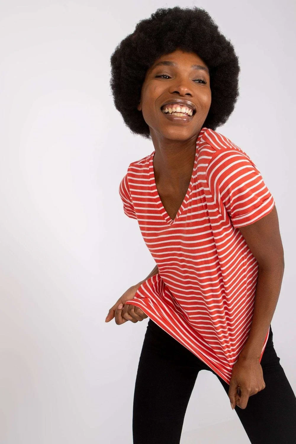 Pruhované tričko s krátkými rukávy a výstřihem.