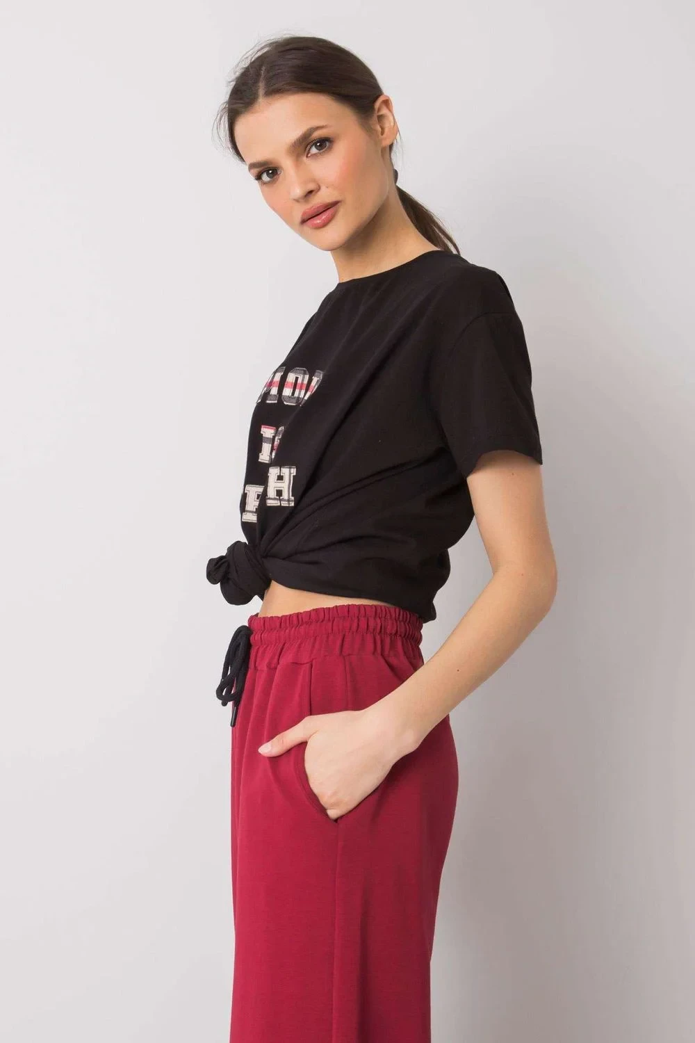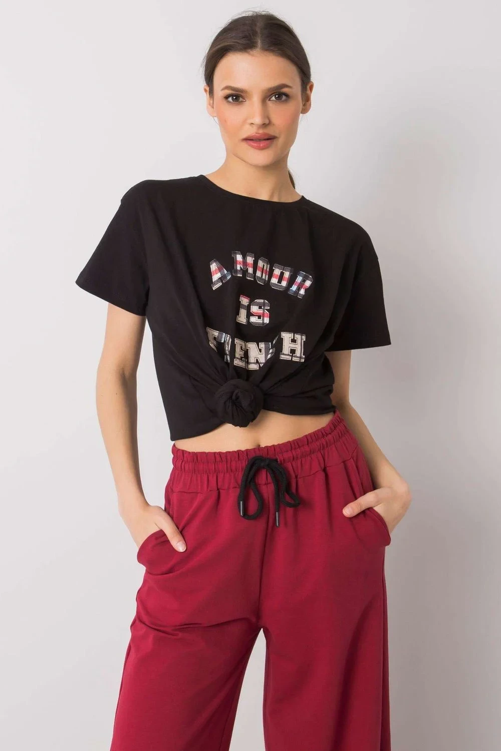Dámské tričko volnějšího střihu s krátkými rukávy a kulatým výstřihem. Ozdobný nápis na přední straně.