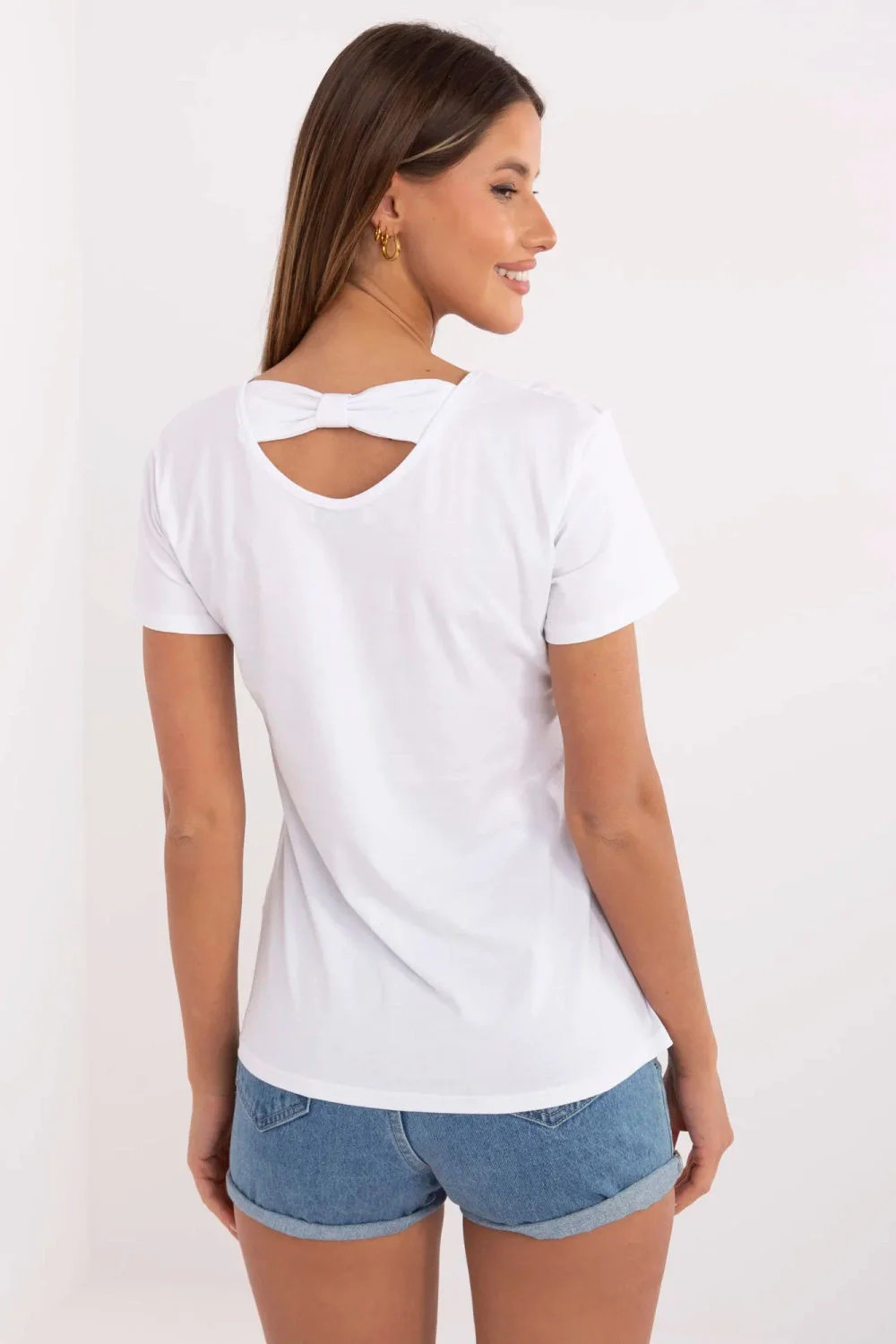 Dámské tričko s potiskem a aplikací je casual základ s módním twistem, ideální pro každodenní stylizace. Vyrobeno z měkké a elastické látky kombinace bavlny a elastanu, poskytuje pohodlí a skvělé přizpůsobení postavě. Model má standardní délku, krátký rukáv a klasický kulatý výstřih, což ho skvěle doplňuje s džínami, kraťasy nebo sukní. Na přední straně vyniká efektním potiskem s aplikací a třpytivými flitry, které přidávají tričku charakter a lehkost. Roztomilým akcentem je malá mašlička na zádech, která jemně zdůrazňuje ženský styl a přitahuje pohledy. Ideální volba pro pohodlný, ale stylový každodenní outfit s dráždivým nádechem.