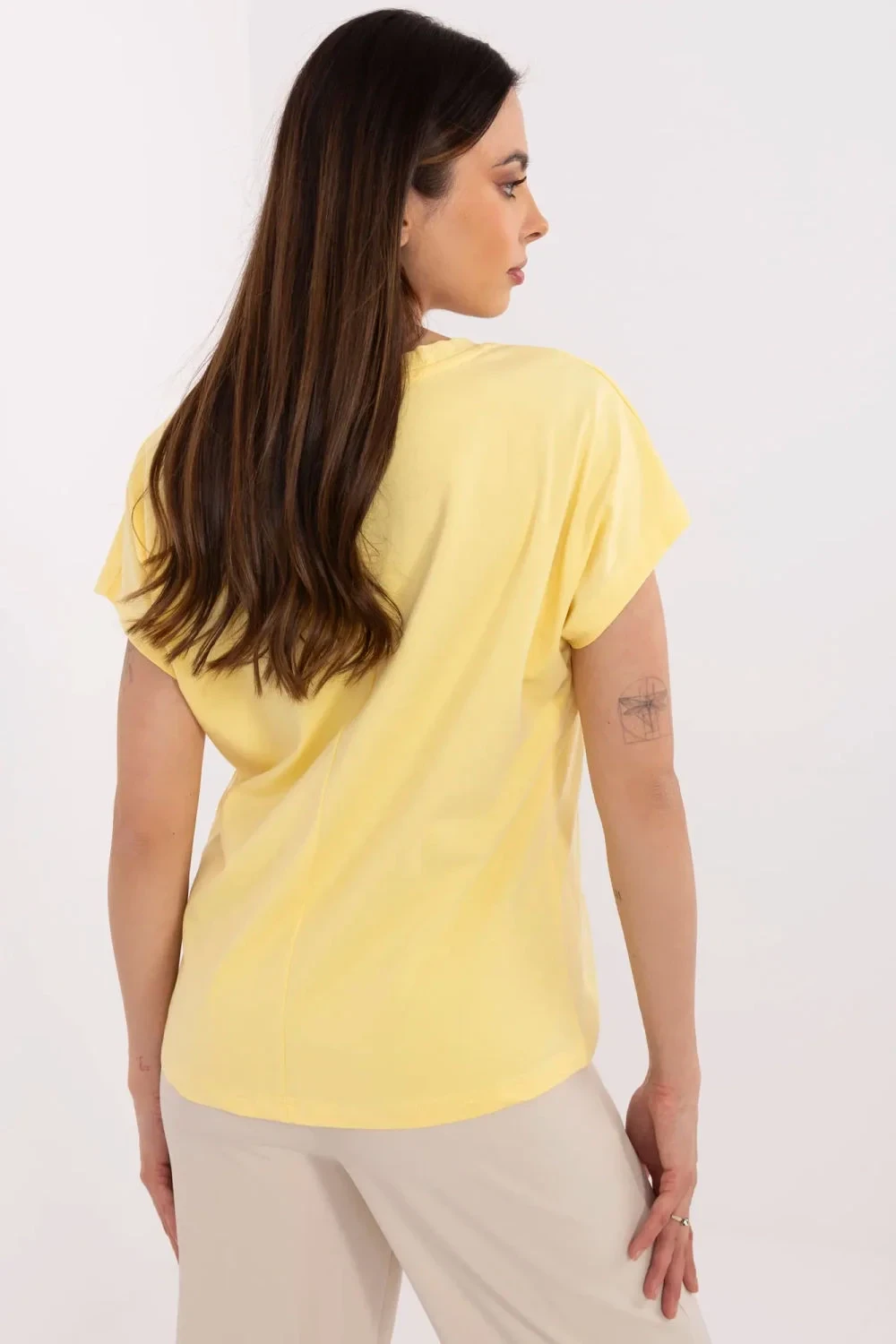 Každodenní dámské triko ideální na každý den, kombinující pohodlí s módním zpracováním. Vyrobeno z měkké bavlny s přídavkem elastanu, zajišťuje pohodlí při nošení a lehké přizpůsobení postavě. Model standardní délky s krátkým rukávem a ženským výstřihem do "v" krásně zdůrazňujícím linii krku. Triko se vyznačuje efektním spojením potisku a jemného vyšívání, vytvářející originální a stylový detail. Ideální volba pro ženy ocení casualový styl s nádechem elegance pro každý den.