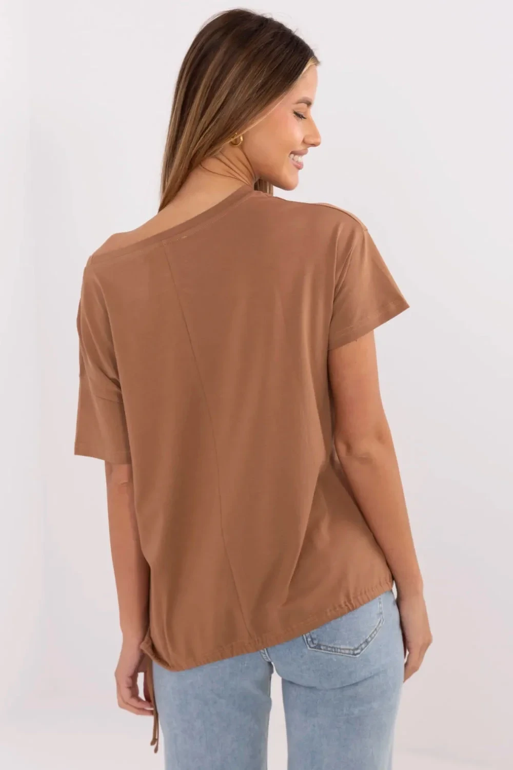 Sázet na pohodlí a stylový vzhled s naším dámským tričkem ideálním na každý den. Vyrobeno z vysoce kvalitní bavlny s přídavkem elastanu, zajišťuje skvělé přizpůsobení a volnost pohybu. Model se standardní délkou a krátkým rukávem se hodí do každého každodenního outfitu. Tričko vyniká originálním potiskem vpředu a decentním vázáním dole vlevo, které dodává celek dívčího šarmu. Kulatý výstřih zdůrazňuje klasický, ležérní charakter trička, činí ho univerzálním kouskem šatníku. Ideální návrh na nákupy, procházku nebo setkání s přáteli, stylově a pohodlně každý den.