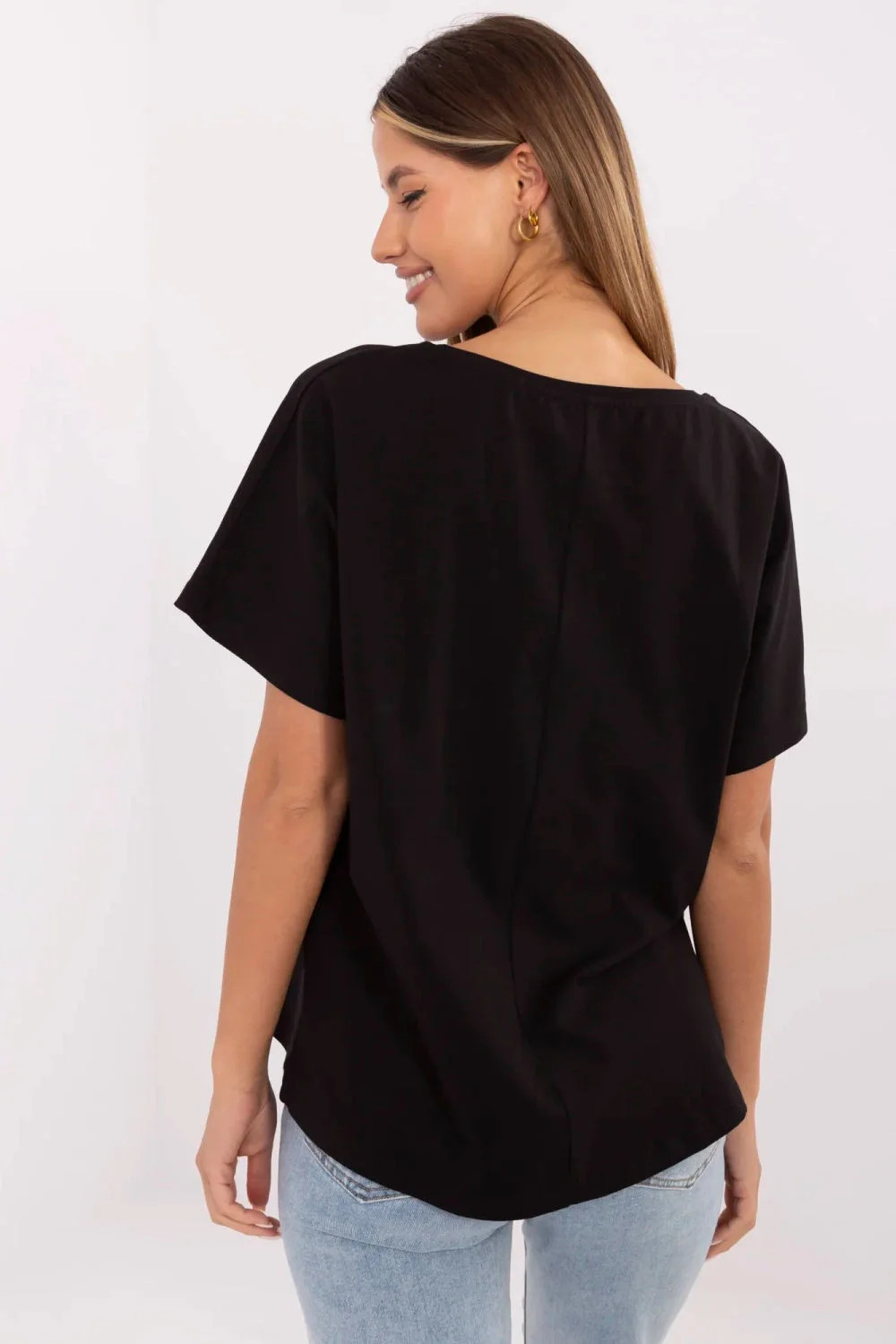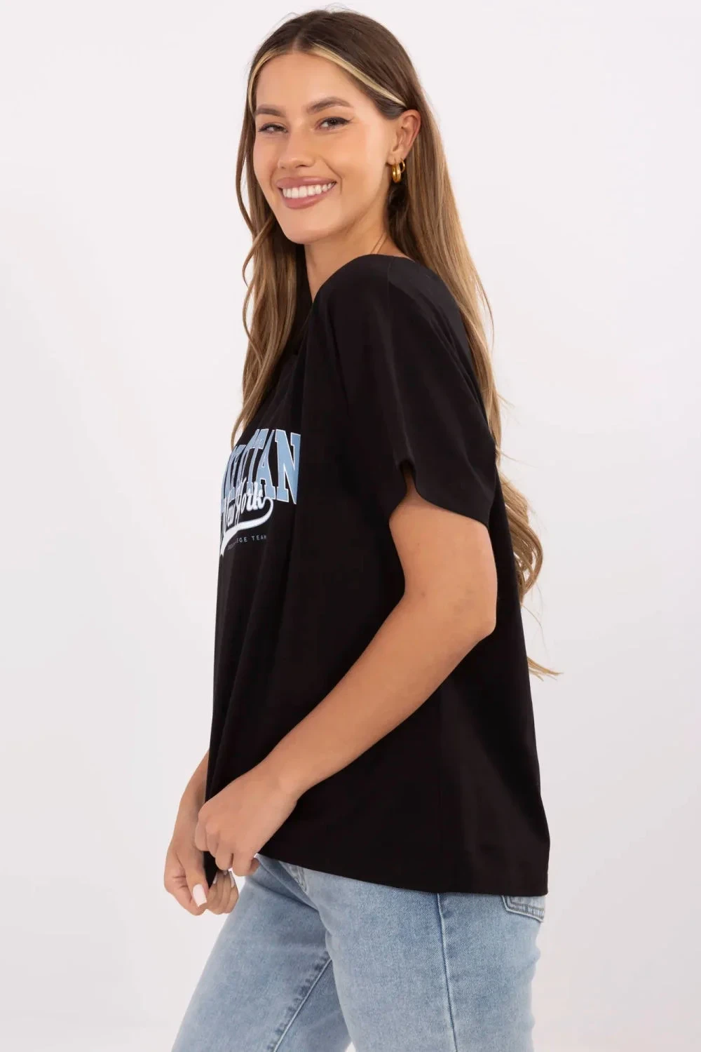Elegantní a pohodlné dámské tričko v casualovém stylu je ideální volbou na každodenní příležitosti. Vyrobeno z vysoce kvalitní bavlny, poskytuje prodyšnost a pohodlí po celý den. Model s standardní délkou, s krátkým rukávem a klasickým, kulatým výstřihem skvěle ladí s džíny, kraťasy nebo sukní. Dominantní potisk na přední straně přidává charakter a dělá tričko výrazným v každé stylizaci. Skvělá základna pro každodenní outfit lehká, pohodlná a vždy v trendu.