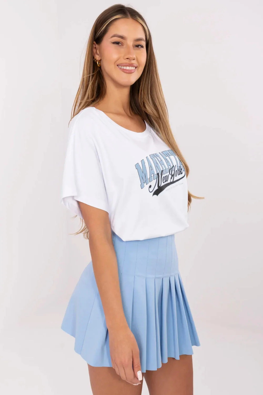 Stylový a pohodlný dámský tričko v casual stylu je ideální volbou pro každodenní příležitosti. Vyrobený z vysoce kvalitní bavlny, poskytuje prodyšnost a pohodlí po celý den. Model standardní délky s krátkým rukávem a klasickým kulatým výstřihem skvěle ladí s džíny, kraťasy nebo sukní. Dominantní potisk vpředu dodává charakter a zajišťuje, že tričko vynikne v každém outfitu. Skvělá základna pro každodenní lehké, pohodlné a vždy trendy outfity.