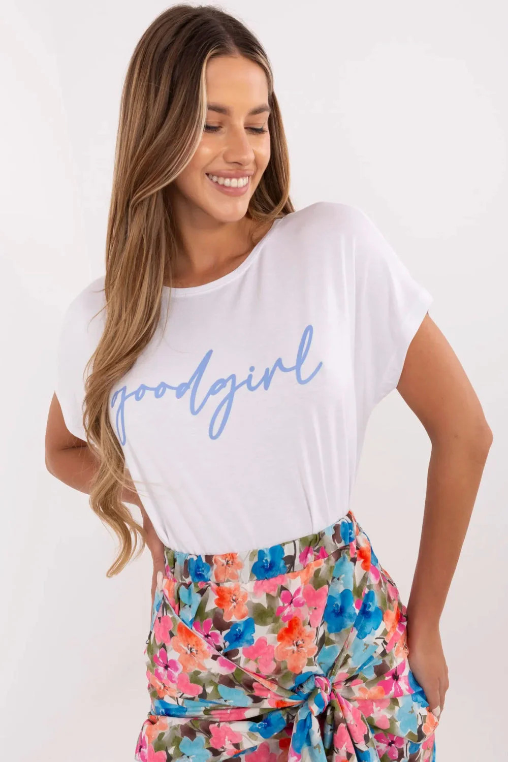 Casual dámské triko standardní délky je kombinací pohodlí a módního stylu. Vyrobeno z měkké a elastické směsi viskózy a elastanu, poskytuje příjemné přiléhání a pohodlí při nošení. Model s krátkým rukávem a klasickým kulatým výstřihem se skvěle hodí do každodenních stylizací. Dominantním prvkem je potisk s nápisy na přední straně, který dodává celku charakter. Skvělá volba na každý den k džínám, legínám nebo sukní.
