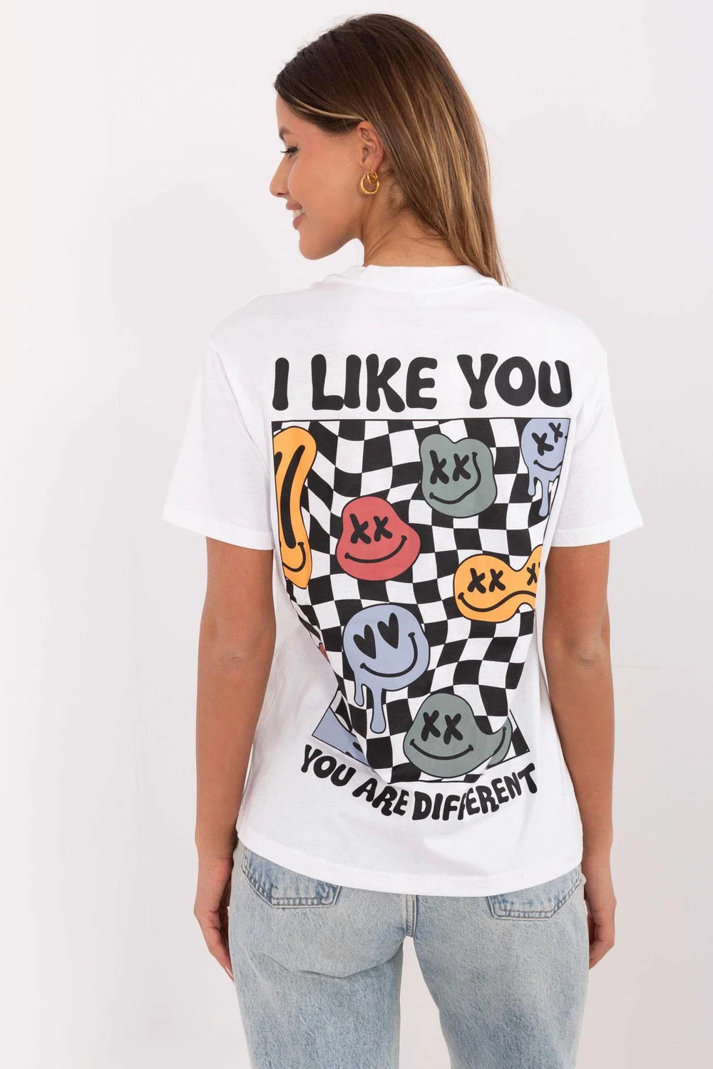 Dámské tričko klasického střihu, vyrobené z vysoce kvalitní bavlny, která zajistí pohodlí při nošení. Přední část zdobí decentní potisk s nápisem, který tričku dodává moderní a minimalistický charakter. Zadní část je ozdobena potiskem spojeným s dynamickými nápisy, které dodávají celku originální výraz. Model má standardní délku, krátké rukávy a okrouhlý výstřih, skvěle se hodí do každodenních stylizací. Ideální volba pro ženy, které ocení pohodlí a styl v jednom.