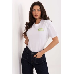 Tento dámský tričko casual je ideální volbou pro každodenní nošení pro ženy, které ocení jednoduchost s nádechem výrazného stylu. Na přední straně je malý nápis ve výšce hrudníku, který jemně zdůrazňuje charakter trička, zatímco na zádech je umístěn větší potisk s nápisem, který celkovému vzhledu dodává moderní, pozornost přitahující vzhled. Tričko je vyrobeno z vysoce kvalitní bavlny, díky čemuž je měkké, prodyšné a pohodlné na nošení. Standardní délka, krátký rukáv a kulatý výstřih zajišťují, že tričko skvěle padne na postavě a hodí se k mnoha každodenním outfitům. Univerzální, stylové a pohodlné, skvělá základna pro casual outfity.