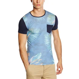 Pánské tričko s krátkým rukávem. Přední strana se zajímavým vzorem a kontrastní našitou kapsou. Hladká zadní strana v tmavě modré barvě.