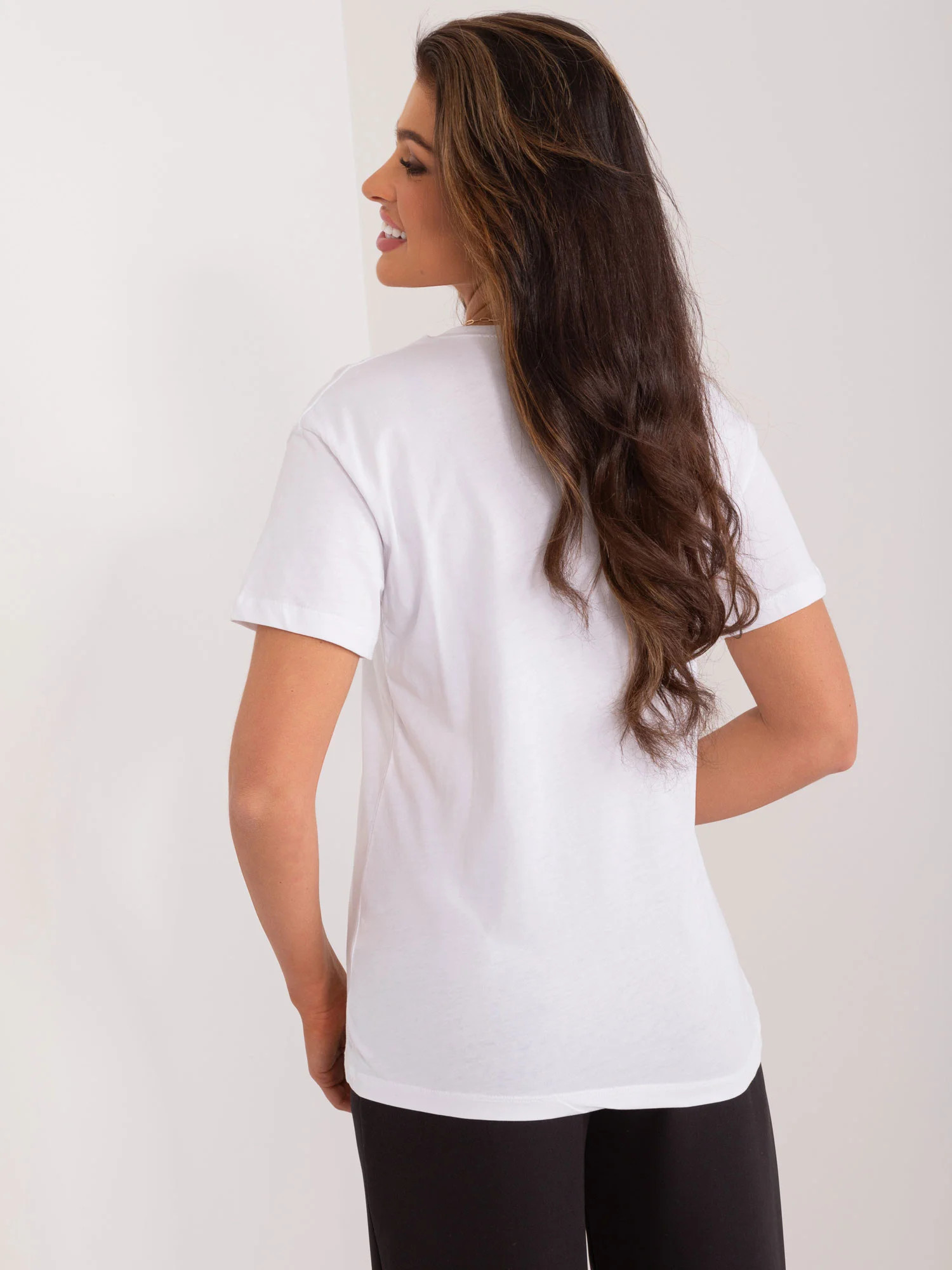 Wymiary t-shirta w rozmiarze S mierzone na płasko: szerokość pod pachami - 48 cm, długość całkowita - 64 cm.