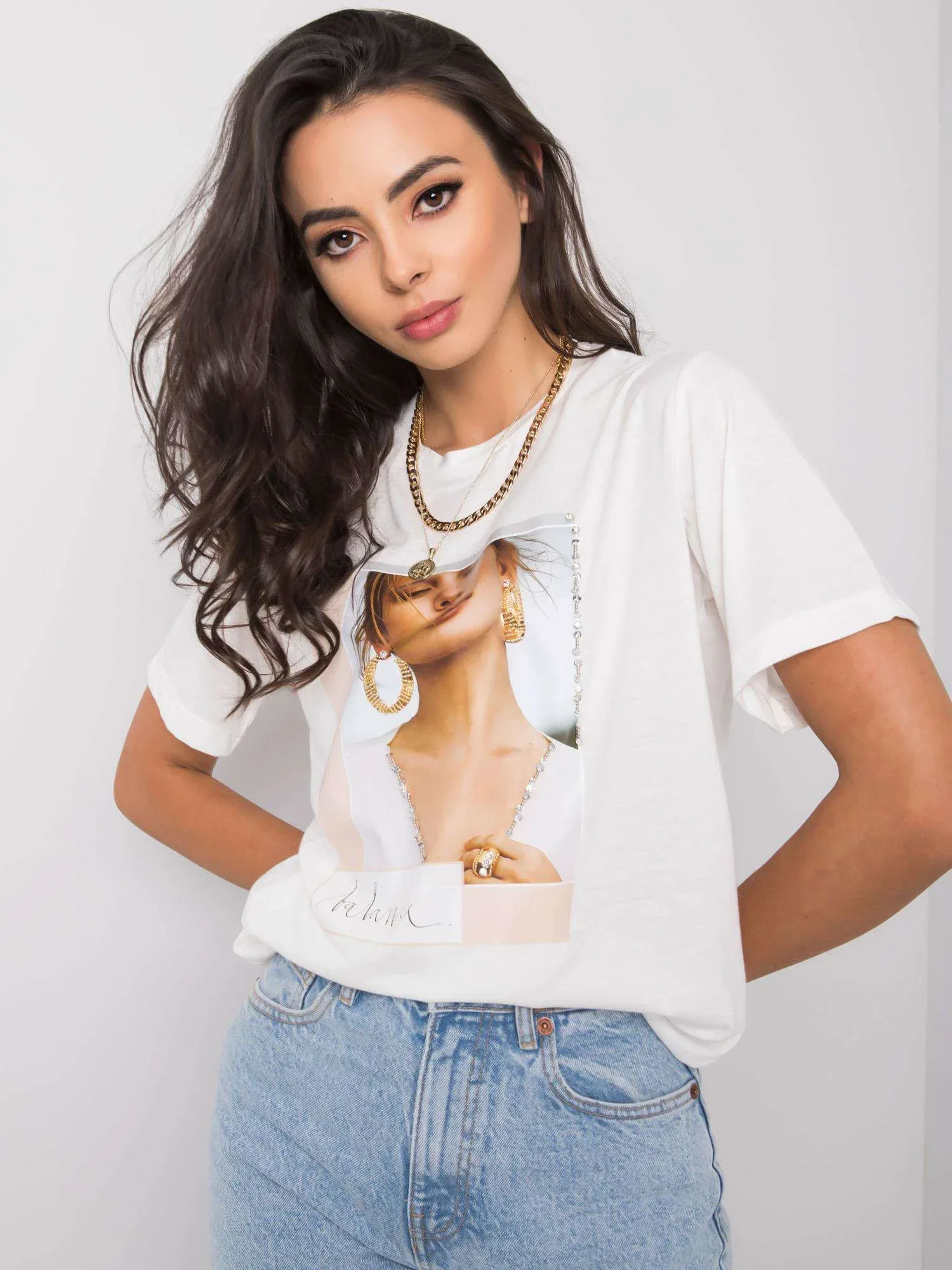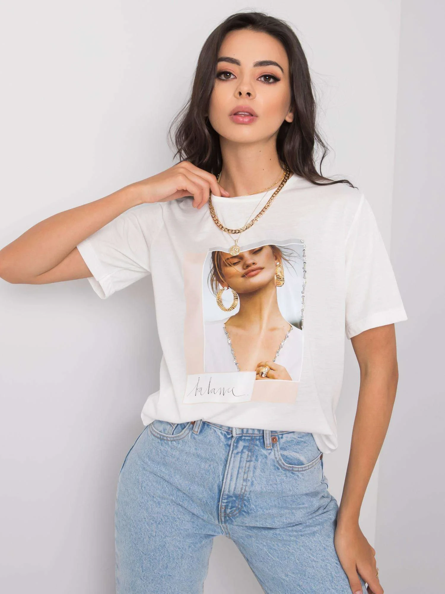 Biały t-shirt damski z printem.