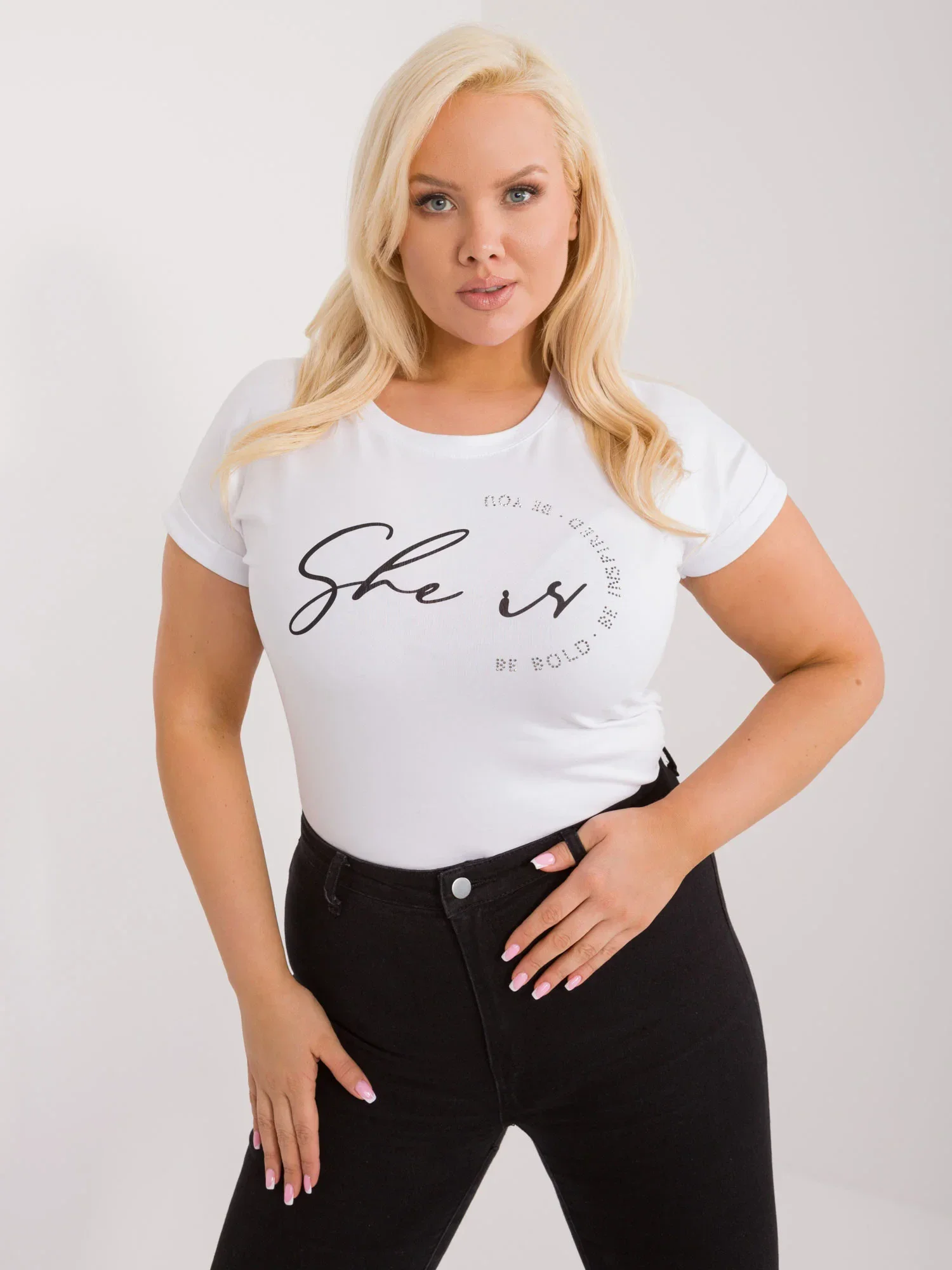 Modelka ma na sobie rozmiar one size. Wymiary modelki: wzrost 172 cm, biust 103 cm, talia 73 cm, biodra 103 cm.