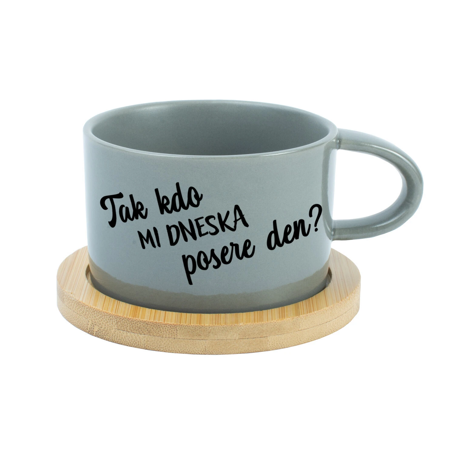 TAK KDO MI DNESKA POSERE DEN? - šedý hrníček makronka 200 ml