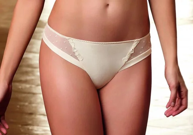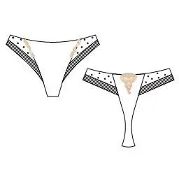 Pěkné dámské tanga Lise Charmel Vás zaujmou hladkým předním dílem a boky z průhledného materiálu, zdobené výšivkami a malými lesklými kamínkami. Materiál: 63% polyamid, 22% elastan, 10% bavlna, 5% polyester