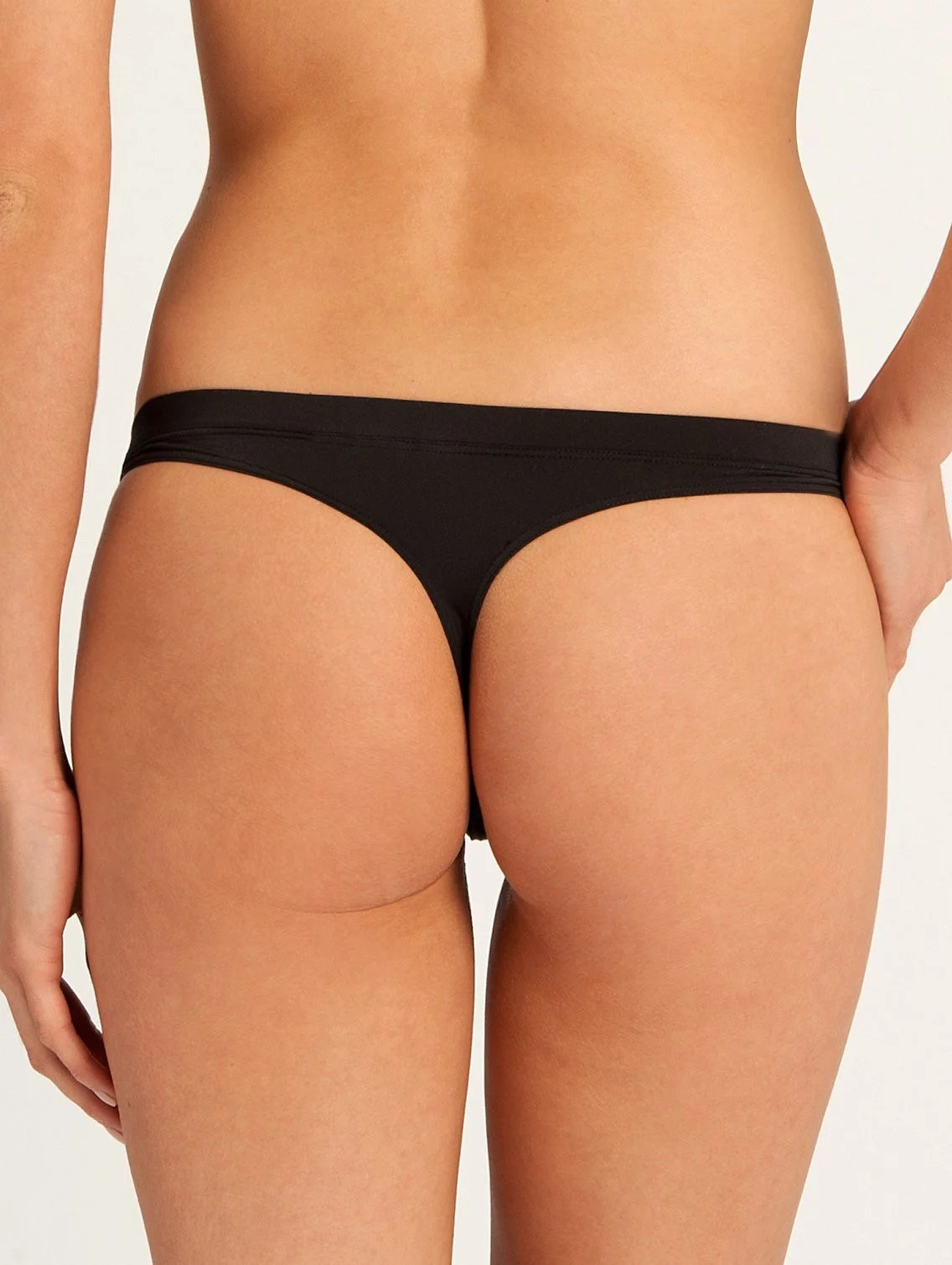 Tanga jsou nižšího střihu. Použitý materiál perfektně sedí, a je příjemný na dotek. V levé části je decentní nápis Calvin Klein doplňující luxusní vzhled.