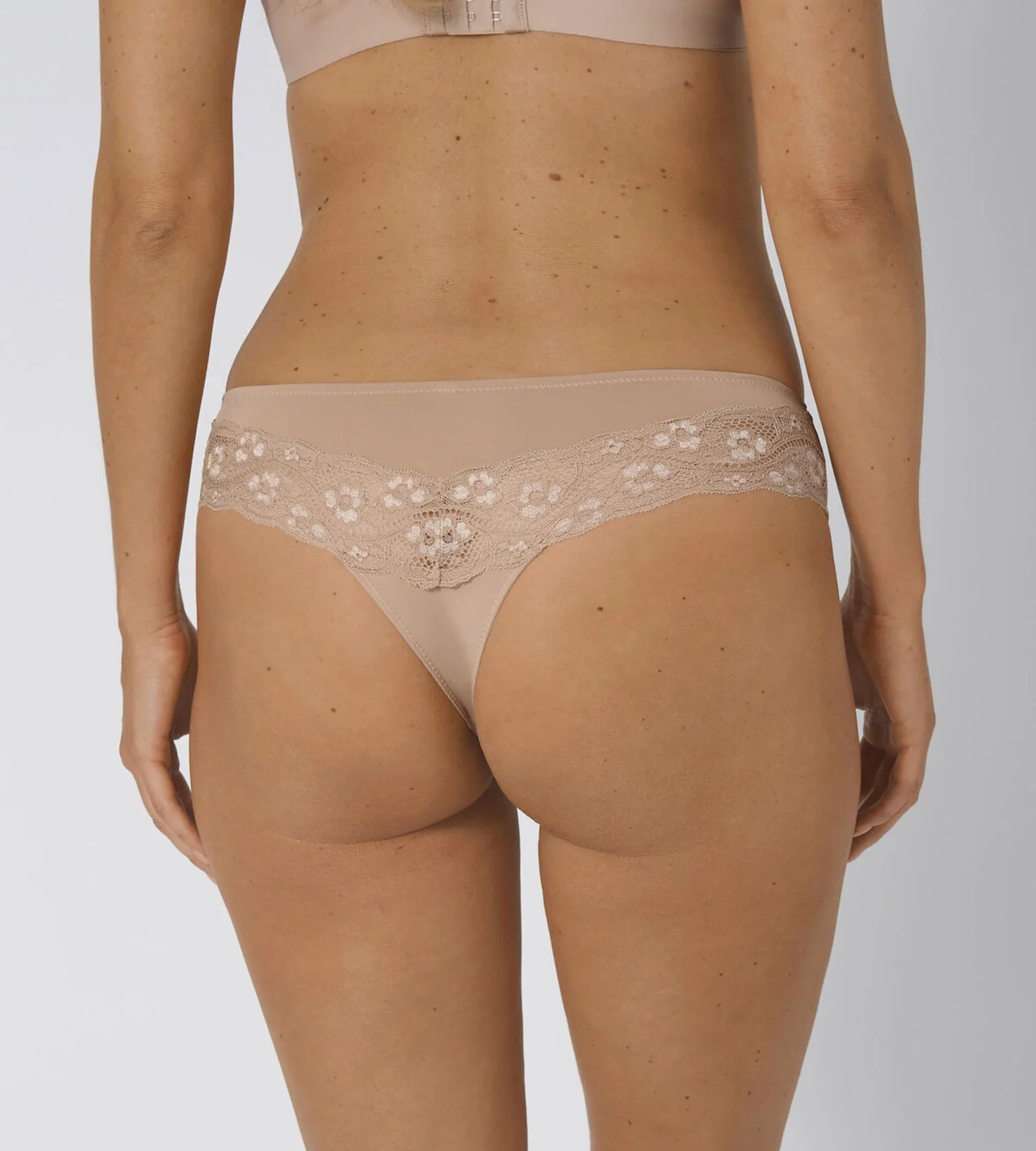 Dámská brazilská tanga z nové řady Lovely Micro od Triumph garantují příjemný pocit na kůži a zároveň i zajímavý vzhled díky ozdobnému krajkovému zdobení.