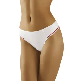 Působivá tanga zdobená na okrajích červenou saténovou stuhou. Hladká přední část, sexy mašle a malý zlom na zadní straně. Elastan 17 %