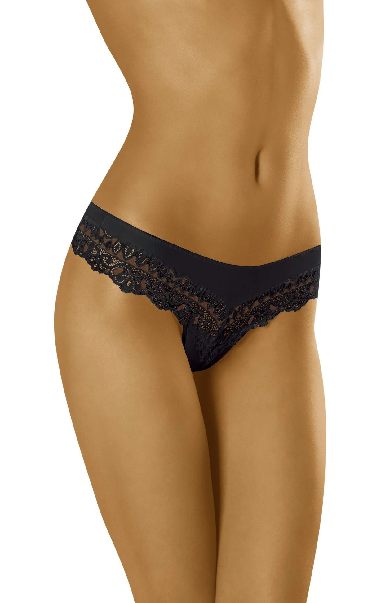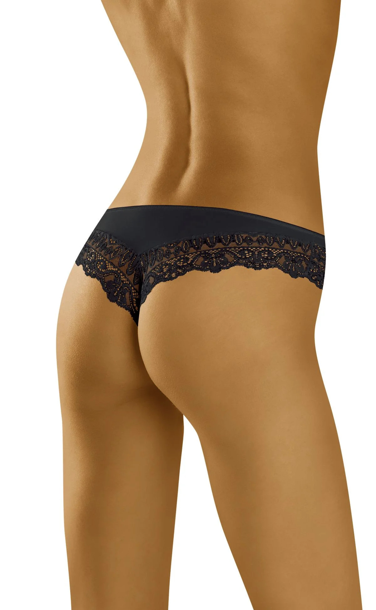 Smyslná tanga s nízkým sedem zakončená okouzlujícím krajkovým lemem. Střih, který krásně zvýrazňuje hýždě a dodává siluetě mimořádně svůdné rysy. 83 % polyamid, 17 % elastan.