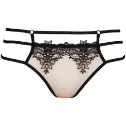 | Sofistikovaná tanga V-8908 jsou spodní prádlo navržené tak, aby překvapilo a svádělosvádět. Tanga jsou ušita z průhledného béžového tylu a jemné černé krajky, v horní části jsou zakončena pásky.originální kombinace upoutá pozornost a rozpaluje smysly, zejména v kombinaci s podprsenkou V-8901. |
