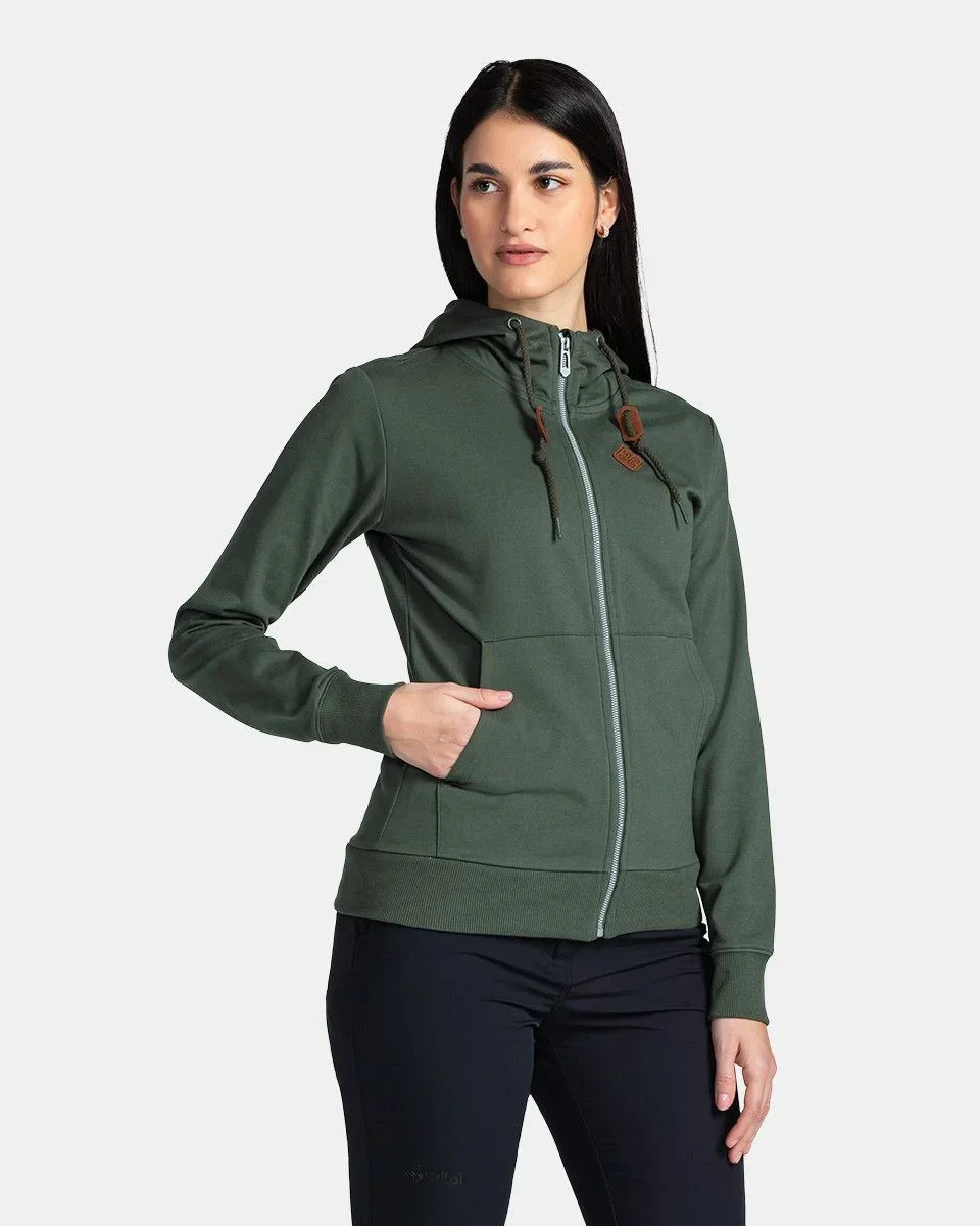 Kilpi TARALI-W je dámská celorozepínací mikina s kapucí, se stahováním na tkaničky. Mikina okouzlí jednobarevným designem s kontrastními prvky z imitace kůže.Materiálové složení: