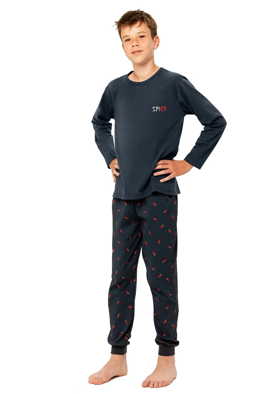 - dlouhé kalhoty s potiskem červených paprik