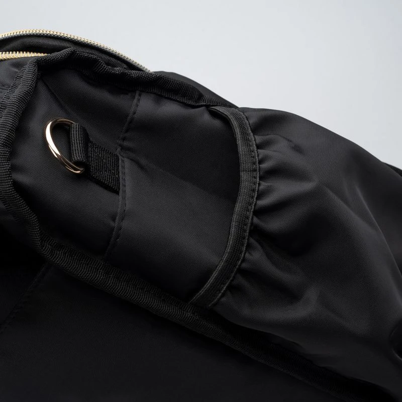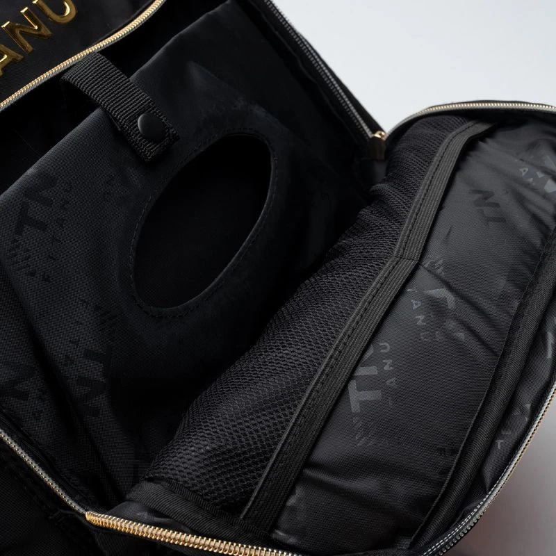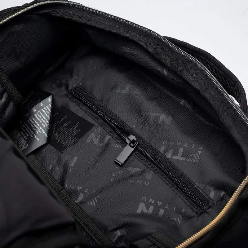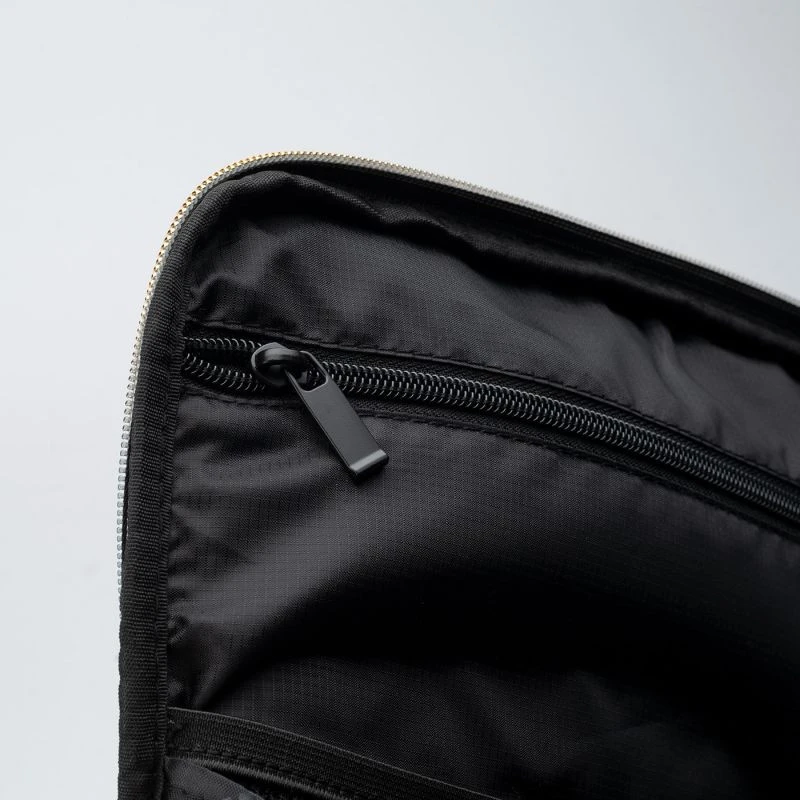 Hlavní prostor má dvě kapsy na zip a síťované přepážky, které organizují prostor uvnitř.