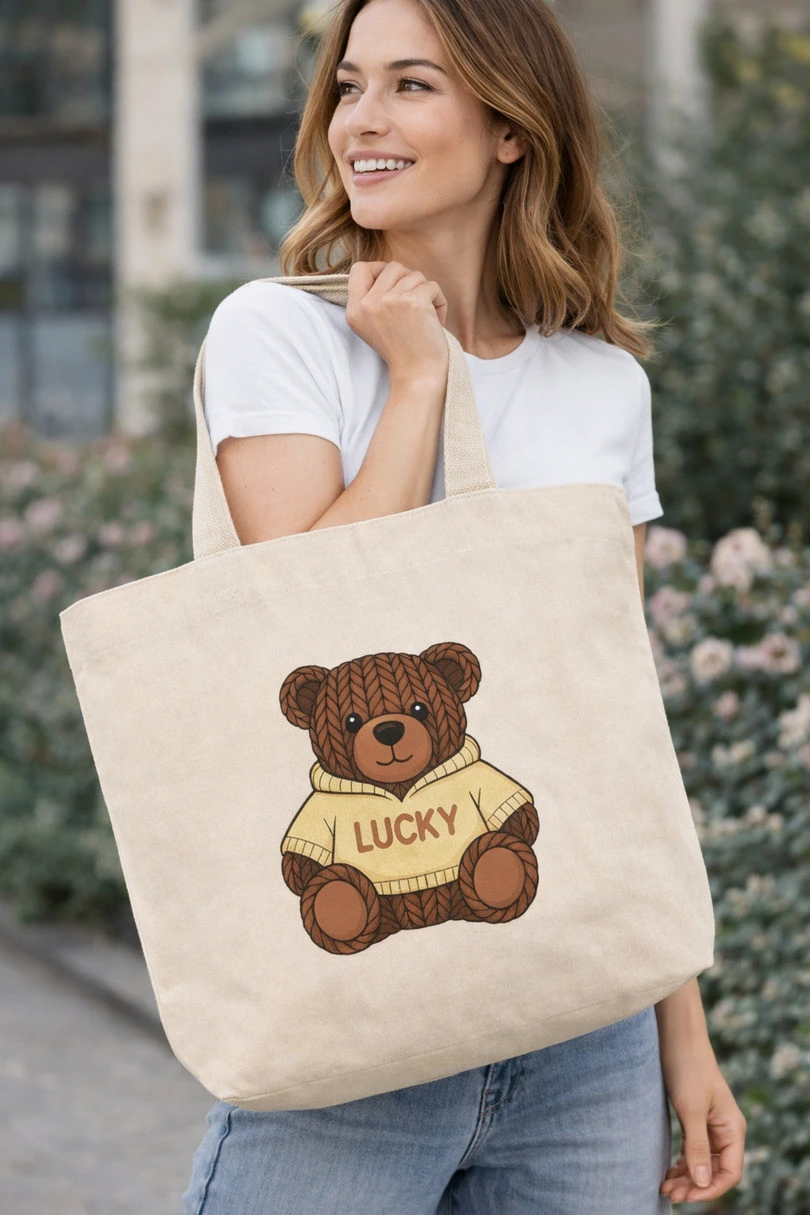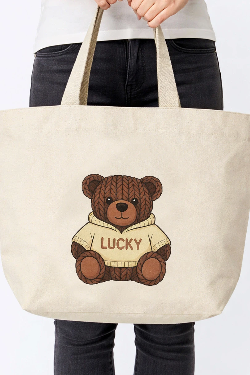 Velká bavlněná nákupní taška s potiskem medvídka je praktickým a stylovým doplňkem ideálním pro každodenní použití. Taška je vyrobena z pevné bavlny, je ekologická, odolná a opakovaně použitelná, takže je ideální na nákupy, procházky nebo výlety. Na přední straně je roztomilý potisk medvídka, který tašce dodává jedinečný a módní charakter. Prostorný vnitřní prostor umožňuje uložit nákup, knihy nebo jiné nezbytnosti a pohodlná, pevná ucha umožňují tašku pohodlně nosit na rameni nebo v ruce. Je to ideální volba pro lidi, kteří oceňují funkčnost, styl a ekologická řešení. Šířka: 60 cm, výška: 40 cm