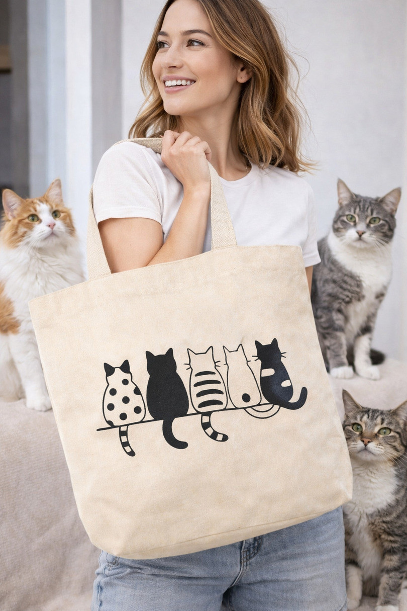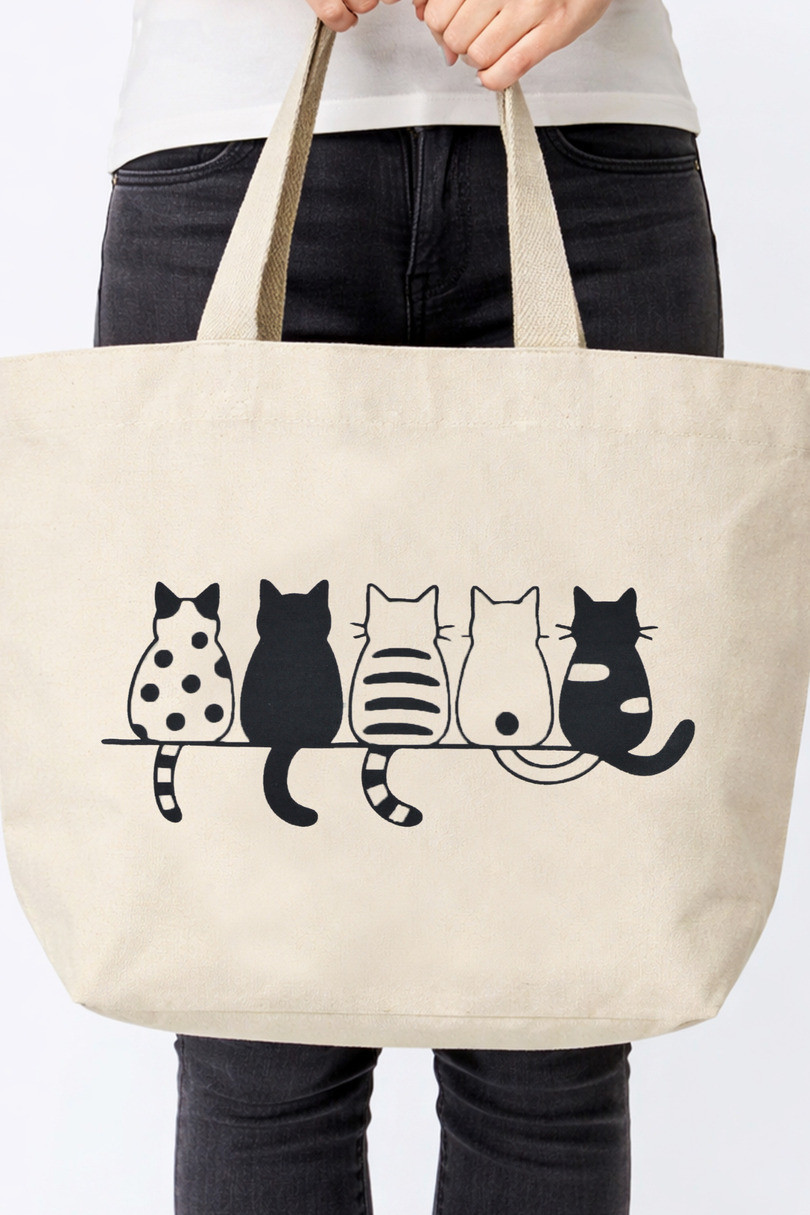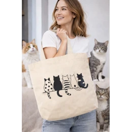 Velká bavlněná nákupní taška s módním kočičím potiskem je praktickým a stylovým doplňkem pro milovníky zvířat. Je vyrobena z kvalitní přírodní bavlny, je odolná, pohodlná a šetrná k životnímu prostředí. Díky prostornému designu je taška ideální na každodenní nákupy, procházky, výlety nebo setkání s přáteli. Originální kočičí potisk jí dodává jedinečný charakter a nechá ji vyniknout v každé stylizaci. Šířka: 60 cm, výška: 40 cm