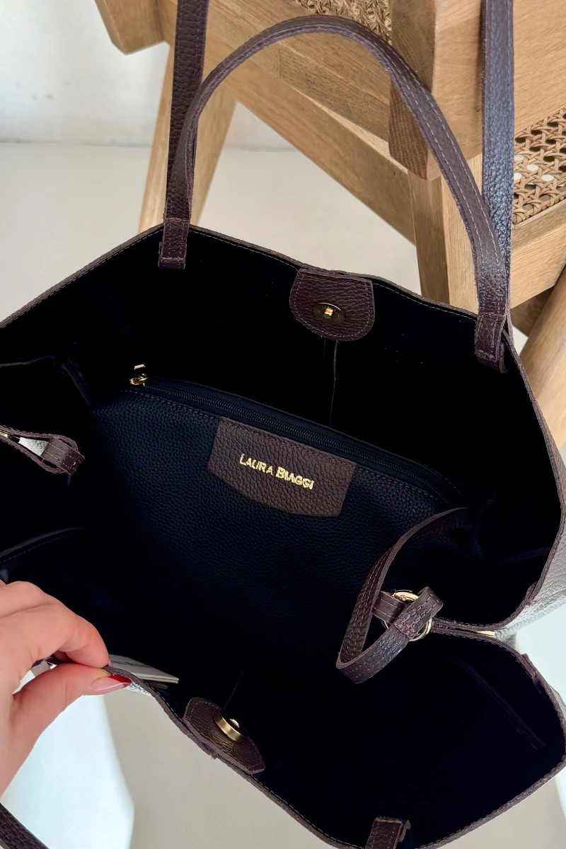Přidání recenze k Taška shopper z přírodní kůže čokoládová Halinne
