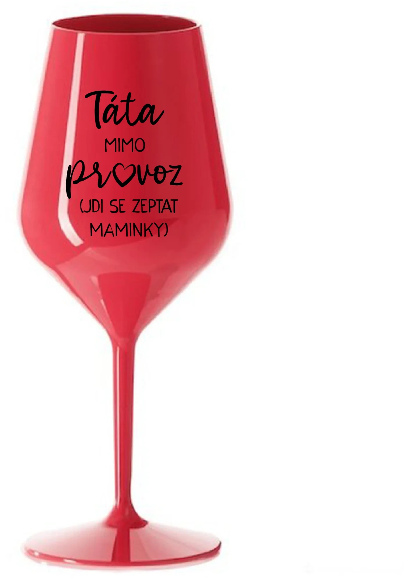 TÁTA MIMO PROVOZ (JDI SE ZEPTAT MAMINKY) - červená nerozbitná sklenice na víno 470 ml