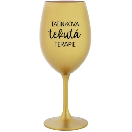 Vinná zlatá sklenice s originálním motivem TATÍNKOVA TEKUTÁ TERAPIE je krásným a osobitým dárkem, které ale využijete i Vy sami třeba ve chvílích, kdy si budete chtít zpříjemnit náročný den. Tyto originální vinné sklenice jsou totiž nejen pro výjimečné události, ale i pro běžné večery, které si chcete zpříjemnit sklenkou dobrého vína. Jistě proto potěší každého milovníka vína, i toho, kdo si umí svůj život vychutnat plnými doušky.