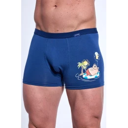 Bokserki męskie uszyte z wysokiej jakości bawełny, która charakteryzuje się zabawnym nadrukiem. Dopasowane, płaskie szwy oraz wygodna guma ukryta w tunelu. Bezuciskowe wykończenie nogawek.