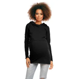 Příjemná na nošení a příjemná na dotek těhotenská mikina vyrobená pro budoucí maminky, které mají rády sportovní styl a cení si pohodlí. Skrytá vyvýšená vrstva na kojení, místo pro těhotenské bříško a prodloužená tunika patří k mnoha výhodám této mikiny.