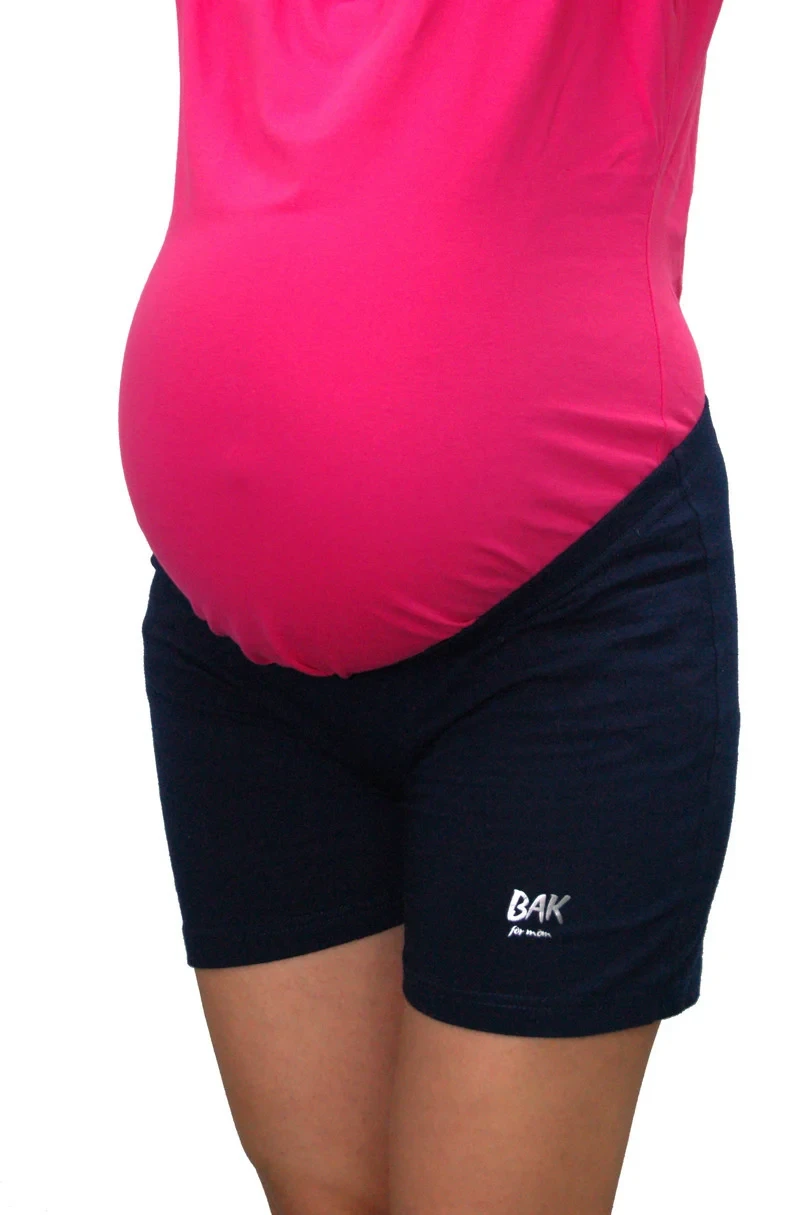 Bavlněné těhotenské šortky značky BAK. Velmi pohodlný model pod bříško, s měkkou, nestahující gumou, bez těhotenského pruhu díky čemuž jsou ideální i na horké dny. 95% bavlna, 5% elastan.