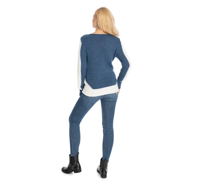 Klasický svetr s lodičkovým výstřihem. Svetr s dlouhými rukávy a ozdobnými vsadkami na bocích.