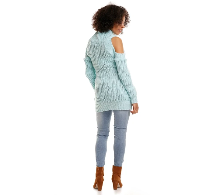 Dlouhý těhotenský svetr s polovičním zipem nahoře a širokým žebrováním dole, vyrobený z měkké, nadýchané příze z akrylu s příměsí mohéru. Originální dlouhé rukávy s koketně odhalenými rameny a příjemná příze zaručují pohodlí a módní vzhled.