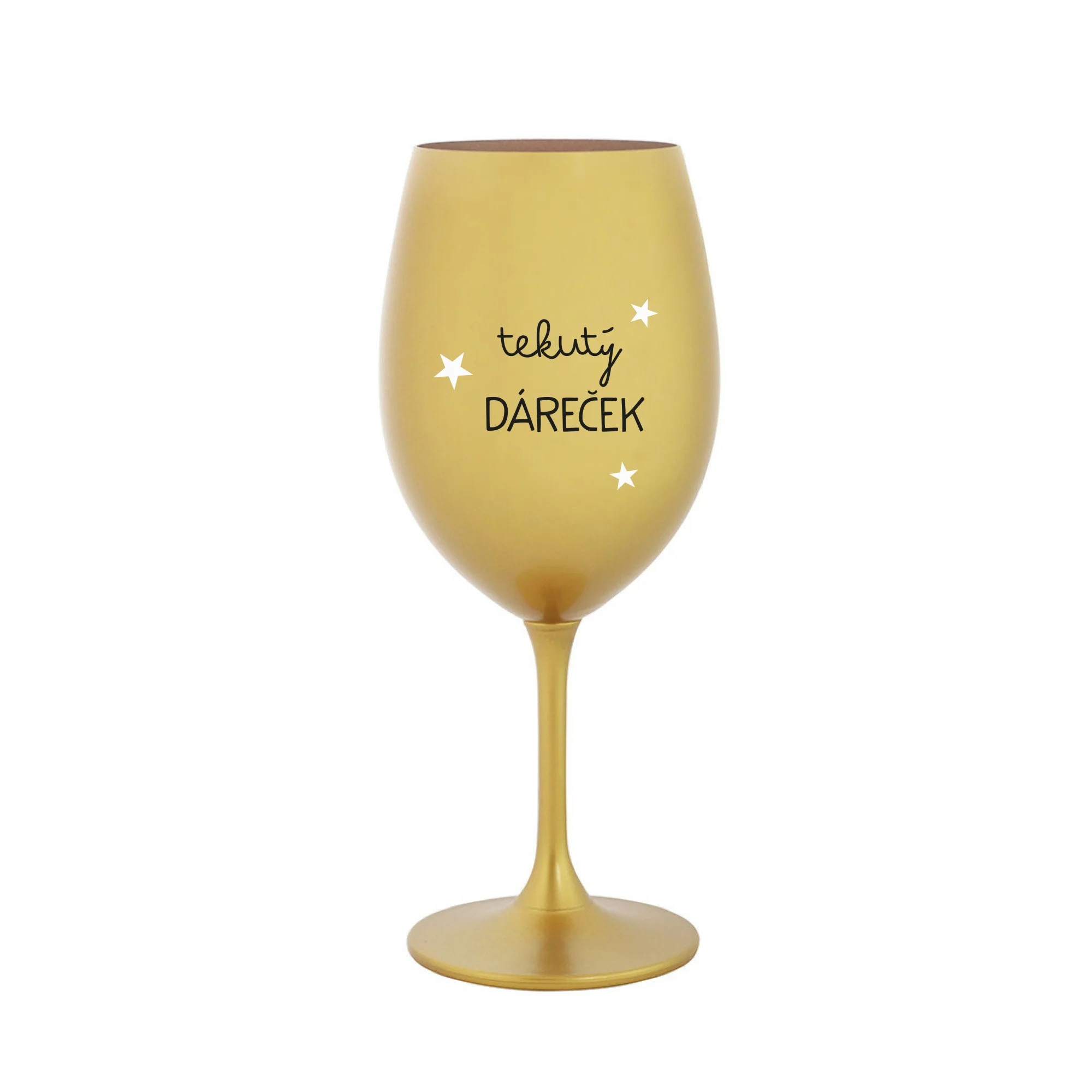 TEKUTÝ DÁREČEK - zlatá sklenice na víno 350 ml