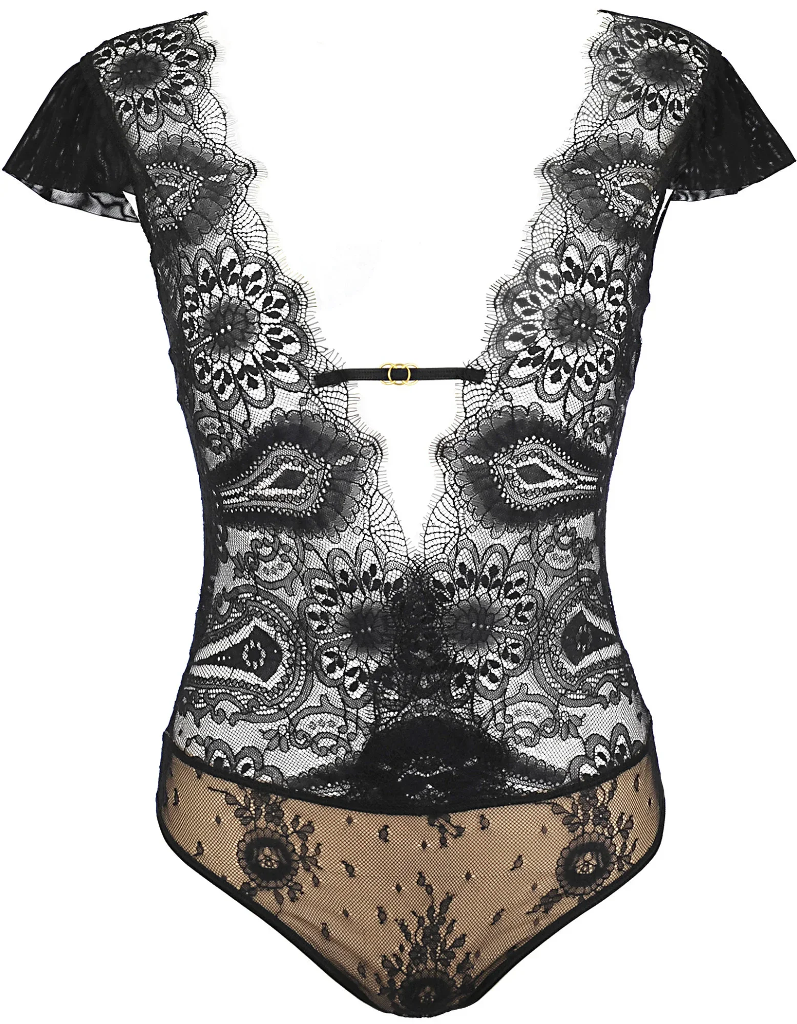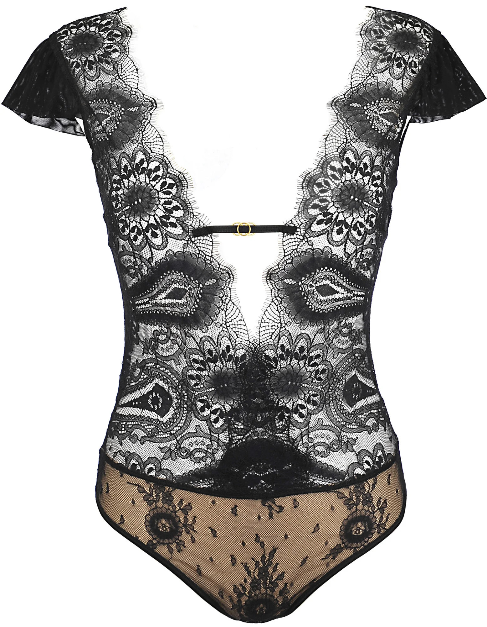 Všestranné body, které je novinkou v naší nabídce, je ideální pod sako nebo na letní večery a skvěle se hodí k černé sukni. Skvěle se hodí na rande nebo na večerní procházku městem. Jsou vyrobeny z béžového lehkého tylu a elastické černé krajky příjemné na dotek, s kulatým zadním výřezem, který odhalí vaše záda. Zapíná se na třířadový háček s očkem v klínu. Navíc je možné upravit šířku pod prsy a u krku.
