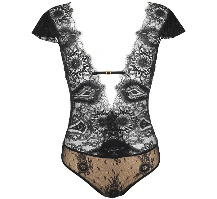 Novinka v našem sortimentu, univerzální body ideální pod sako nebo na letní večery, skvěle se bude hodit k černé sukni. Ideální na rande nebo večer do centra města. Vyrobeno ze světle béžového tylu a elastické, na dotek příjemné černé krajky, na druhé straně je uprostřed kulatý průstřih odhalující záda. Zapíná se na třířadový háček v rozkroku . Navíc regulace šířky pod prsy a na krku. Materiálové složení: polyamid 95 %, elastan 4 %, bavlna 1 %
