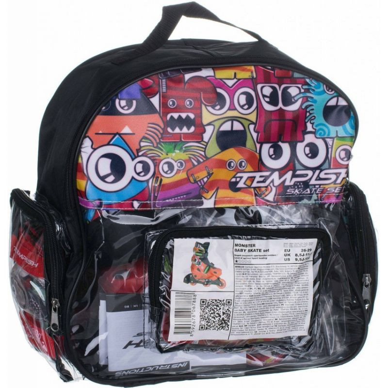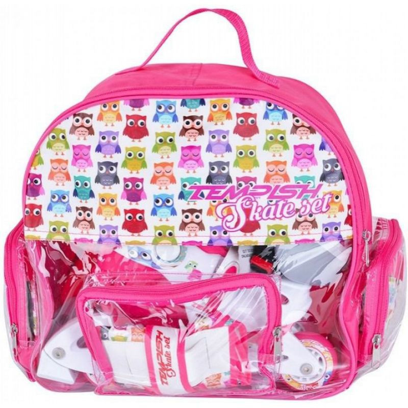 Rolki regulowane TEMPISH Baby Skate '17 Wspaniały zestaw dedykowany dla młodszych rolkarzy. Zestaw posiada wszystkie niezbędne elementy potrzebne do bezpiecznej i komfortowej jazdy – rolki, kask oraz ochraniacze na łokcie, nadgarstki i kolana. Wszystkie elementy zostały wykonane z wytrzymałych materiałów, gwarantując tym samym odpowiednio długą żywotność Zestaw składa się z: Rolki – 1 para Ochraniacze łokci – 2 sztuki Ochraniacze kolan – 2 sztuki Ochraniacze nadgarstków – 2 sztuki Skorupa z tworzywa Miękka wyściółka Anatomiczne dopasowanie Zapięcie: 2 elastyczne paski na rzep Kask dziecięcy – 1 sztuka Materiał zewnętrzny: PVC Materiał wewnętrzny: EPS Waga: 170-190 g (rozm. S) 6 otworów wentylacyjnych Zapięcie: regulowany pasek z klamrą Miękkie elementy wyściółki przypinane na rzep Plecak Wymiary: 37 x 34 x 16 cm (szer. x wys. x gr.) Komora główna zamykana jednokierunkowym zamkiem 2 kieszonki boczne zamykane na zamek Regulowane szelki Uchwyt do noszenia w dłoni
